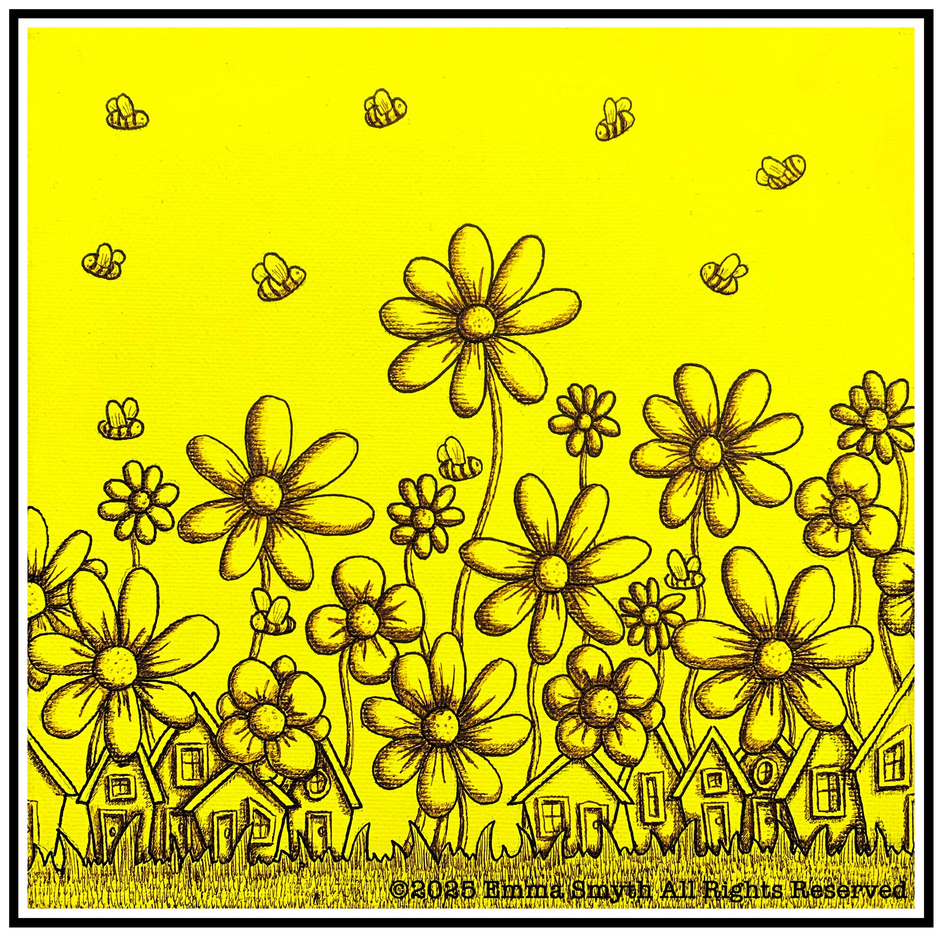 Busy Bees Original Pen and ink and Acrylic on Canvas 20x20cm. Unframed