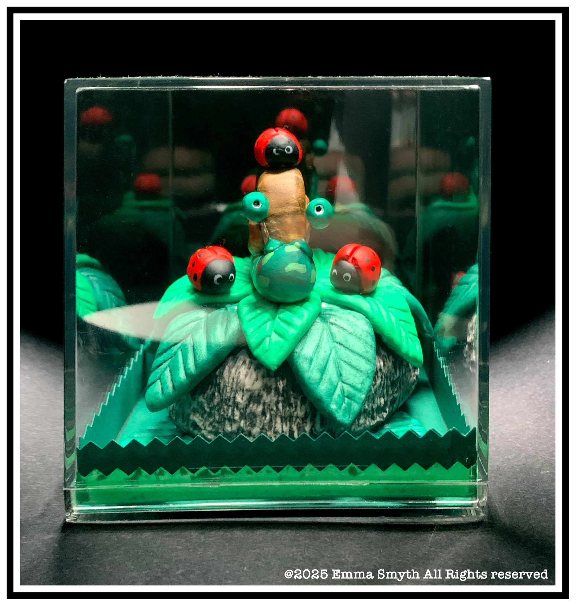 Little Critters Mini Sculpture Original Artwork. A snail and his friends hang out on a pile of leaves.