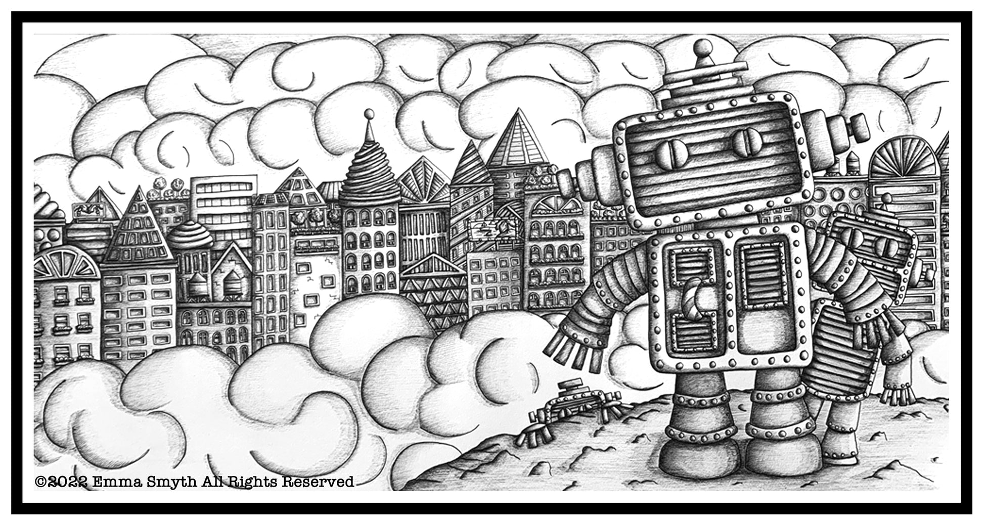 The Smog 60 x 30 cm Original Pen and Ink Framed Artwork